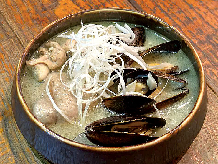 ・鴨の手羽元とム‒ル貝のビ‒ル蒸し 八五〇
