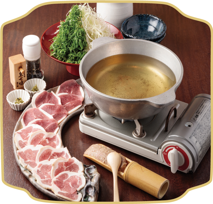 鴨葱焼きの甘さを楽しんだ鉄鍋で藁燻した鴨と二種の葱山と特製「鴨つみれ」をしゃぶしゃぶし、じっくり育てた「出汁」で食べる最後の〆の(雑炊・ラーメン・蕎麦)がまた旨い。