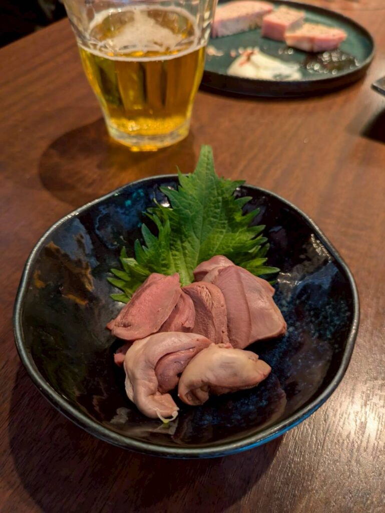 鴨のハツ(心臓)をシンプルに刺身で!わさび醤油と酢味噌で酒が止まりません。