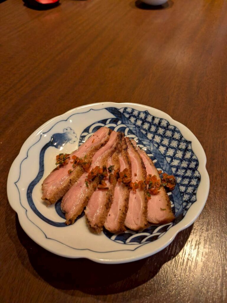 鴨もも肉と昆布の旨味がたまりません。梅や大葉をつかった薬味と共に。